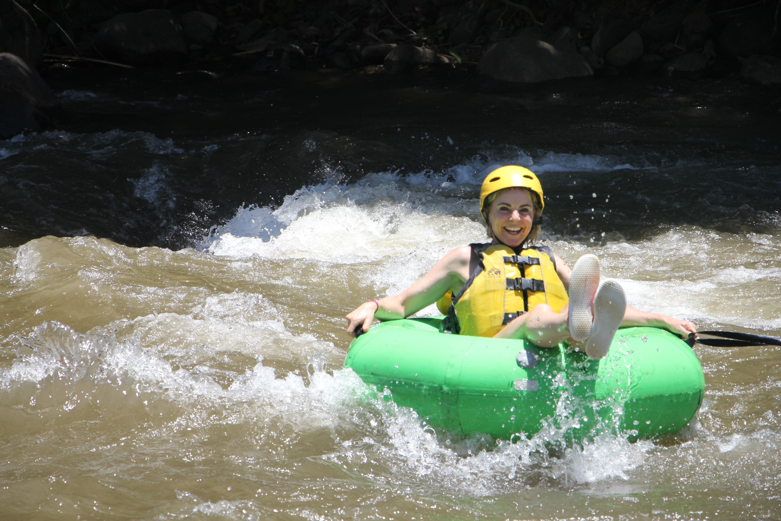Grip it and rip it on the Balsa River during the whitewater rafting adventure over class III and IV rapids for the first hour. Halfway down you will switch from the raft to tubing.